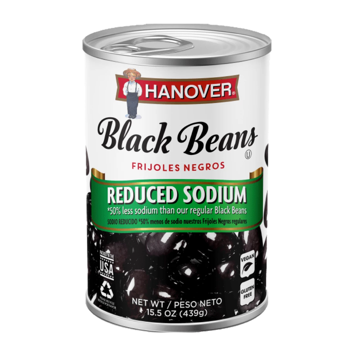 Hanover Foods Black Beans Reduced Sodium contain only premium, plump and shiny beans to ensure a delicious taste and rich, creamy texture. They’re perfect as a stand-alone side dish or when used in soups, mixed with rice or pureed for dips. Ready to heat, serve and enjoy!