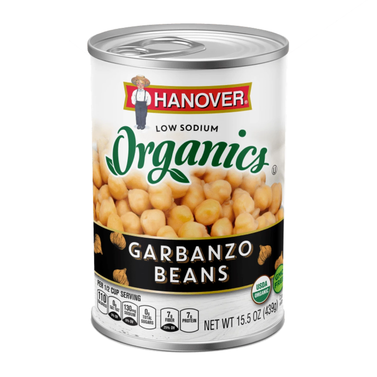 Hanover Organics Garbanzo Beans Low sodium are a convenient way to eat clean and green. They are a simple garnish for salads. The whole beans are full of flavor which can be used to create a delicious hummus. They can be combined with fresh vegetables and stuffed in a pita for a filling sandwich, roasted for a convenient snack to go, or used in your favorite soups or curry dishes.