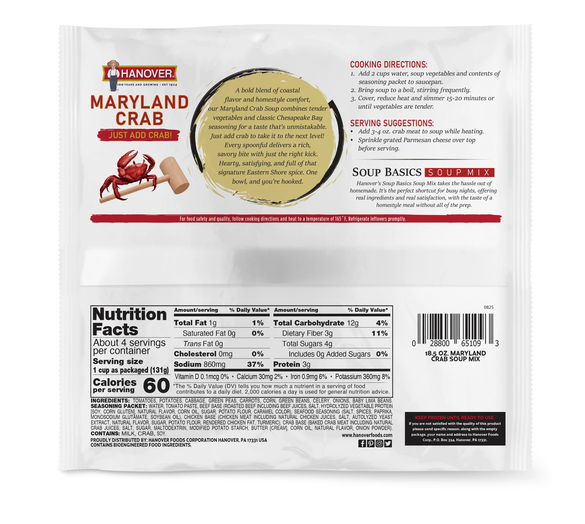 Seasoning Packet: Tomato Paste (Tomatoes), Beef Base (Roasted Beef including Beef Juices, Salt, Hydrolyzed Corn Gluten, Hydrolyzed Soy Protein, Flavoring, Corn Oil, Sugar, Potato Flour, Caramel Color), Seafood Seasoning (Salt, Spices, Paprika, and Monosodium Glutamate, Soy Oil), Chicken Base(Chicken Meat including Natural Chicken Juices, Salt, Autolyzed Yeast Extract, Flavorings, Sugar, Potato Flour, Rendered Chicken Fat and Turmeric), Crab Base (Baked Crab Meat including Natural Crab Juices, Salt, Sugar, Maltodextrin [from Corn], Modified Potato Starch, Butter [Cream Flavorings], Corn Oil, Natural Flavorings, Onion Powder).